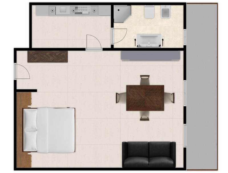 L’immobile, realizzato nel 2010, ha una superficie di circa 45 mq ed è disposto in un unico ambiente funzionale e luminoso, con cucinotto separato che garantisce una migliore organizzazione degli spazi, bagno e un comodo balcone che dona ariosità e sfogo esterno all’abitazione. Gli ambienti risultano ben distribuiti e facilmente personalizzabili, ideali sia per uso abitativo sia per la messa a reddito.