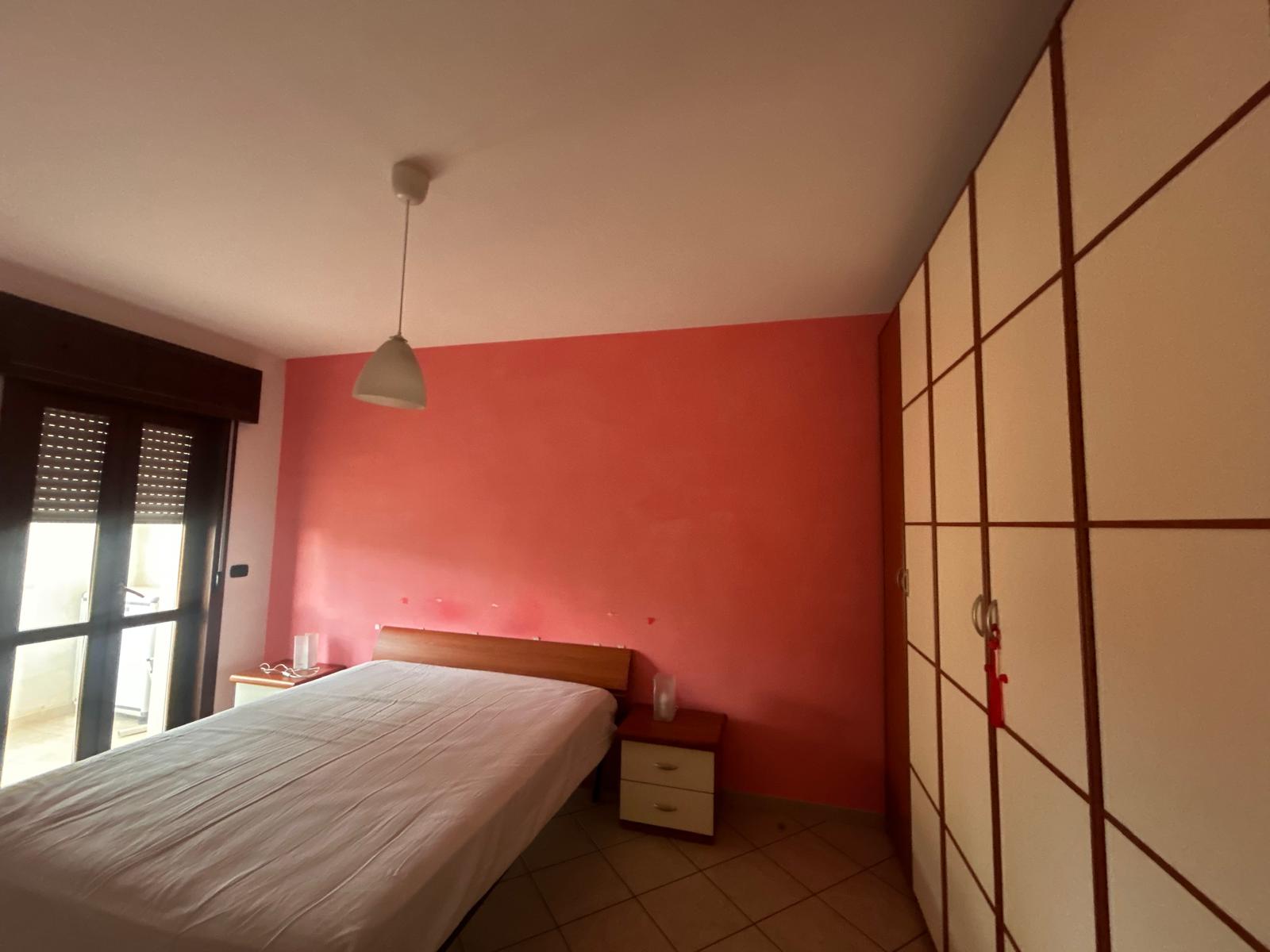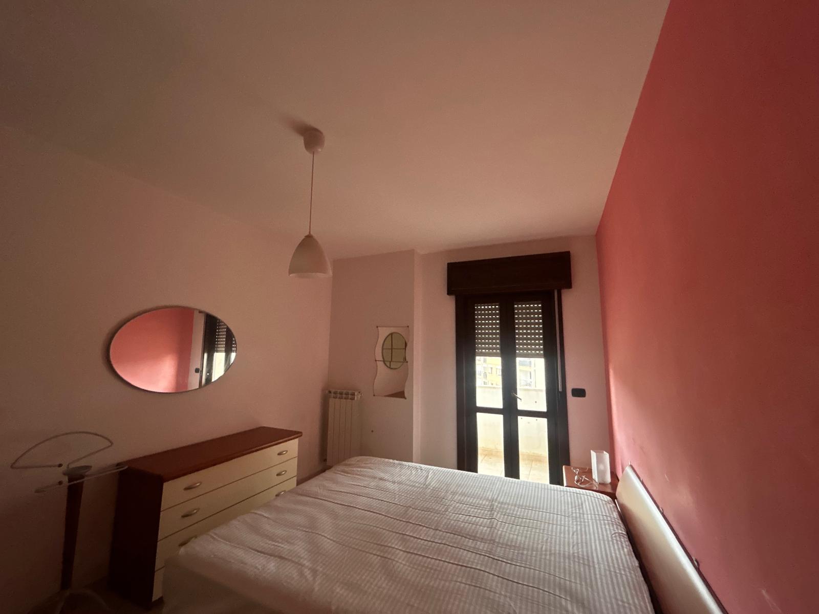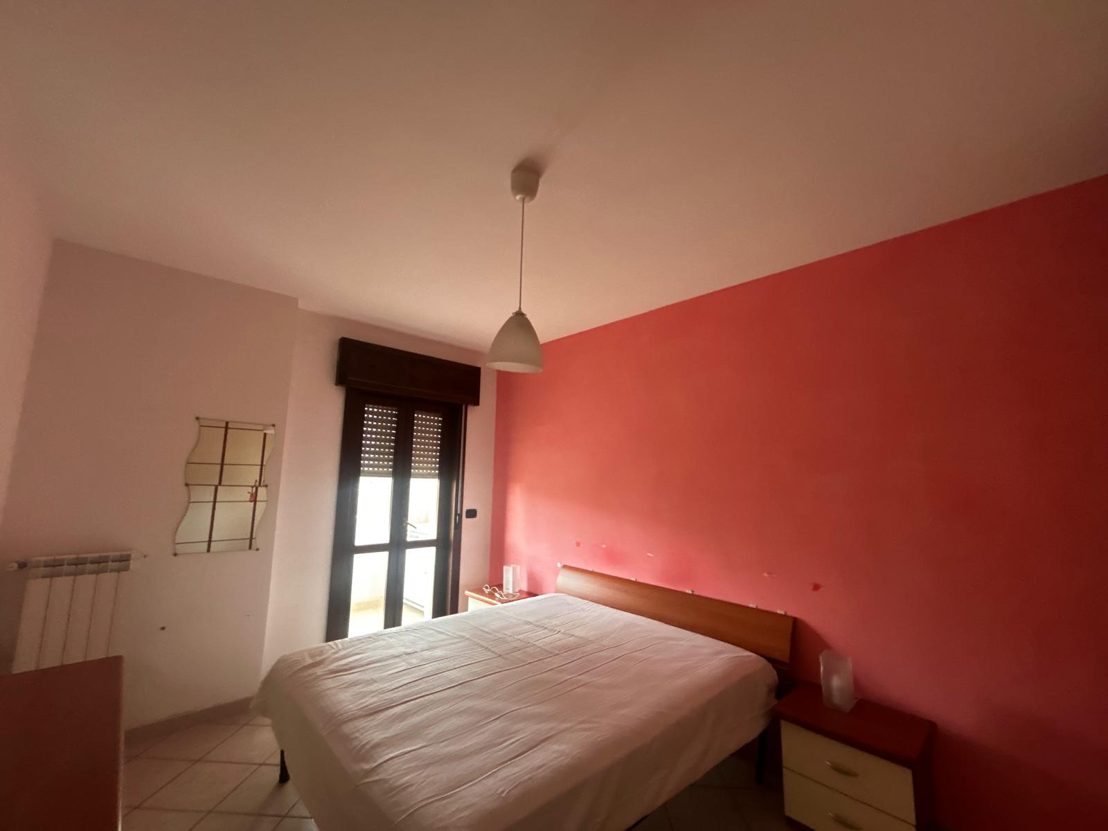 La camera da letto matrimoniale è spaziosa e offre l’accesso diretto a un balcone, condiviso anche con la cucina, ideale per godersi un caffè all’aperto o un momento di tranquillità.