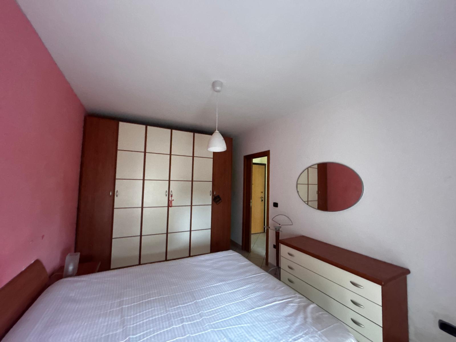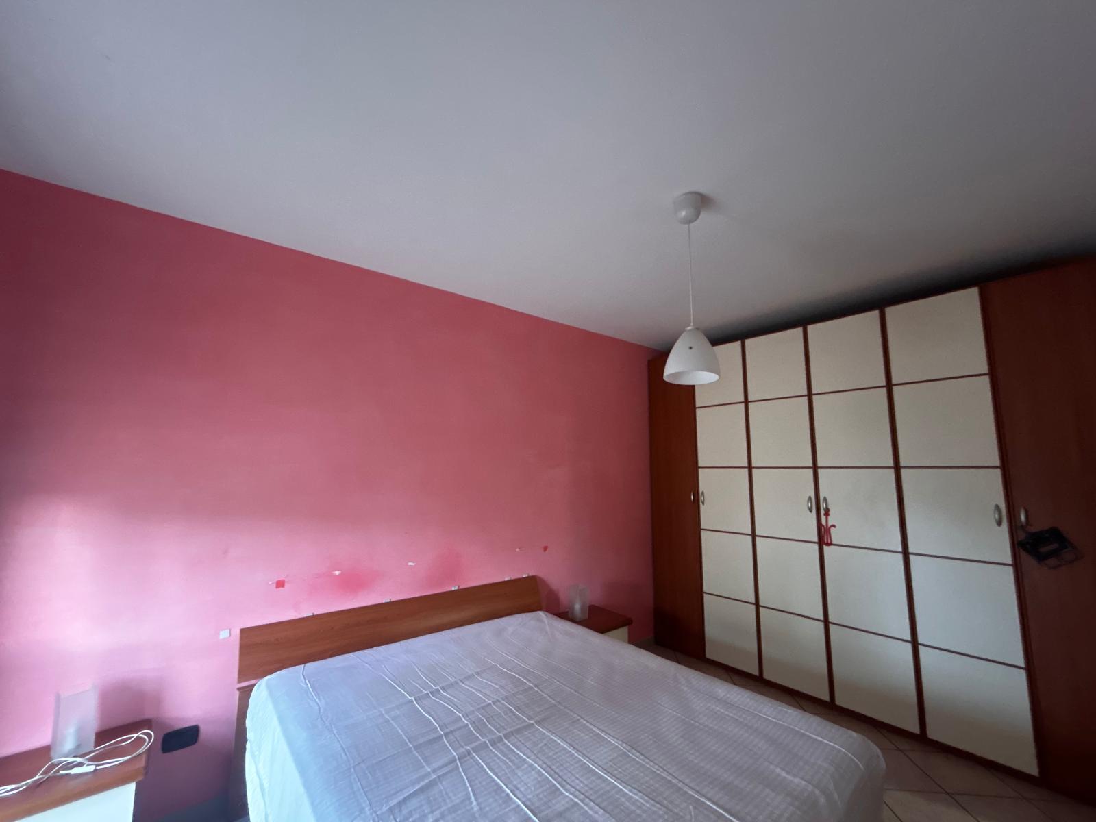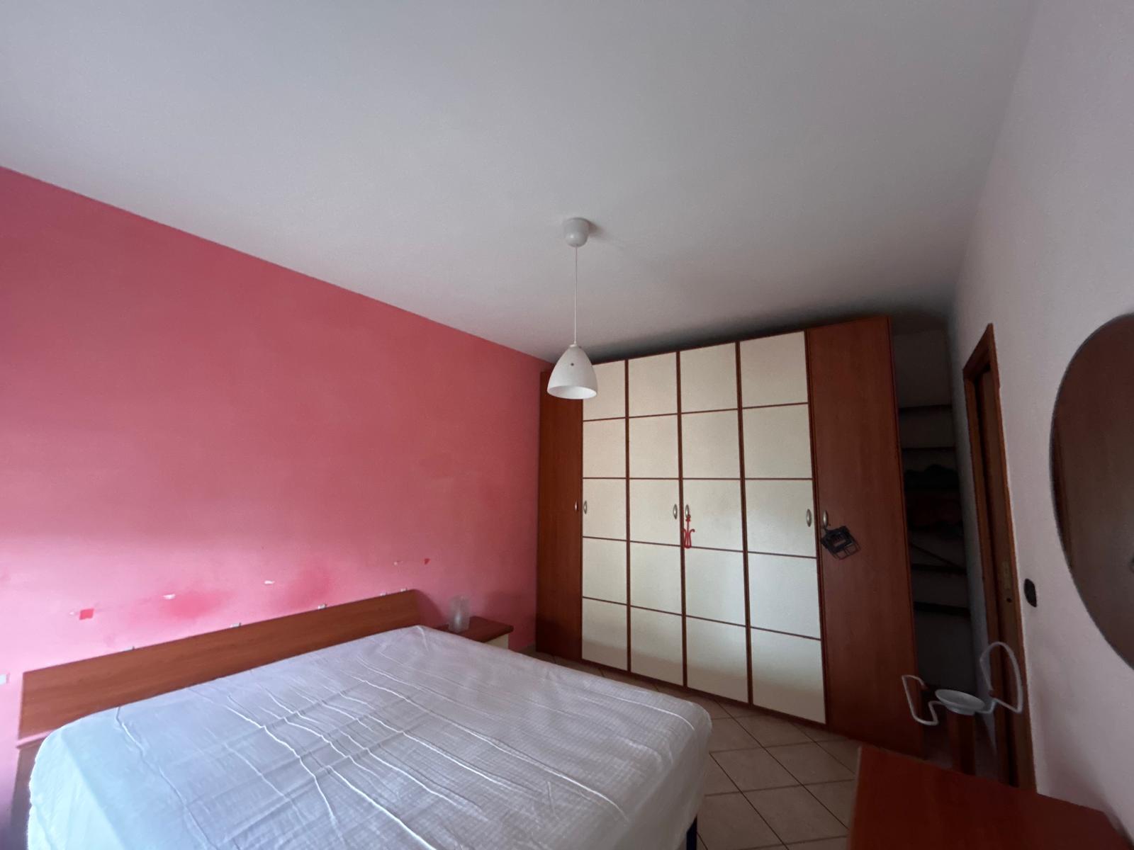 La camera da letto matrimoniale è spaziosa e offre l’accesso diretto a un balcone, condiviso anche con la cucina, ideale per godersi un caffè all’aperto o un momento di tranquillità.