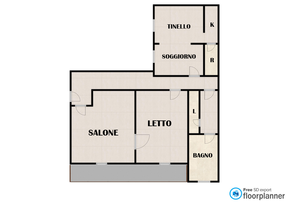 L'immobile ricade al terzo piano di un condominio servito da montacarichi e si compone di: luminoso salone con balcone affacciato sulla via principale, una camera matrimoniale, un soggiorno con camino e angolo cottura, bagno e vano lavanderia.