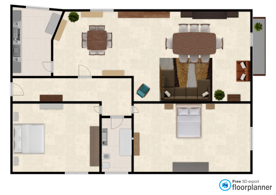 L’appartamento si sviluppa su una pianta comoda e funzionale. L’ingresso introduce in un ampio salone doppio, arricchito dalla presenza di un balcone che garantisce luce naturale e uno sfogo esterno vivibile. Il cucinotto è separato, mentre la zona notte si compone di due spaziose camere da letto matrimoniali e un bagno.
