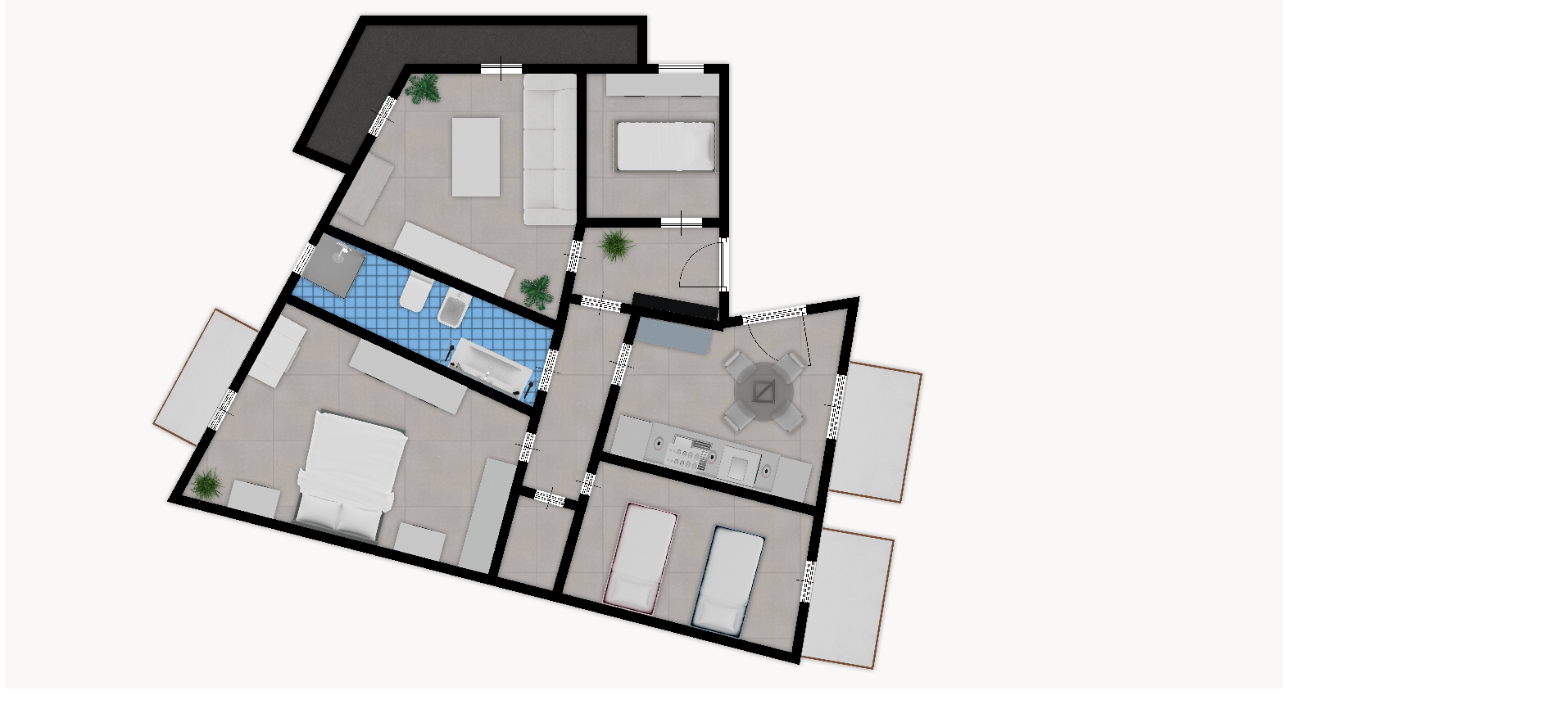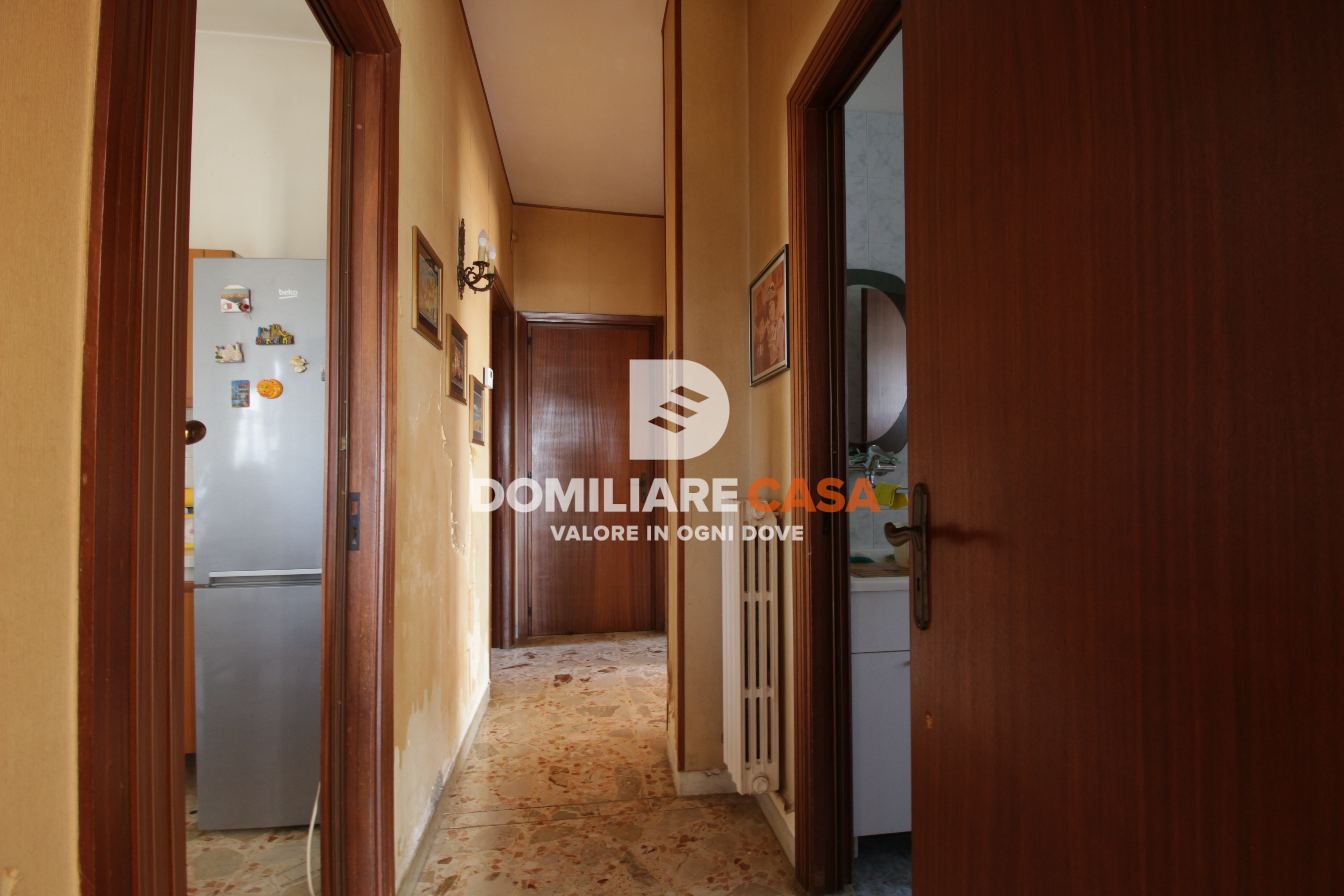 L’abitazione, angolare e ariosa, si compone di un comodo ingresso, ampio salone con balcone, cucina abitabile, tre spaziose camere da letto e bagno. Gli ambienti risultano ben distribuiti e facilmente personalizzabili in fase di ristrutturazione.