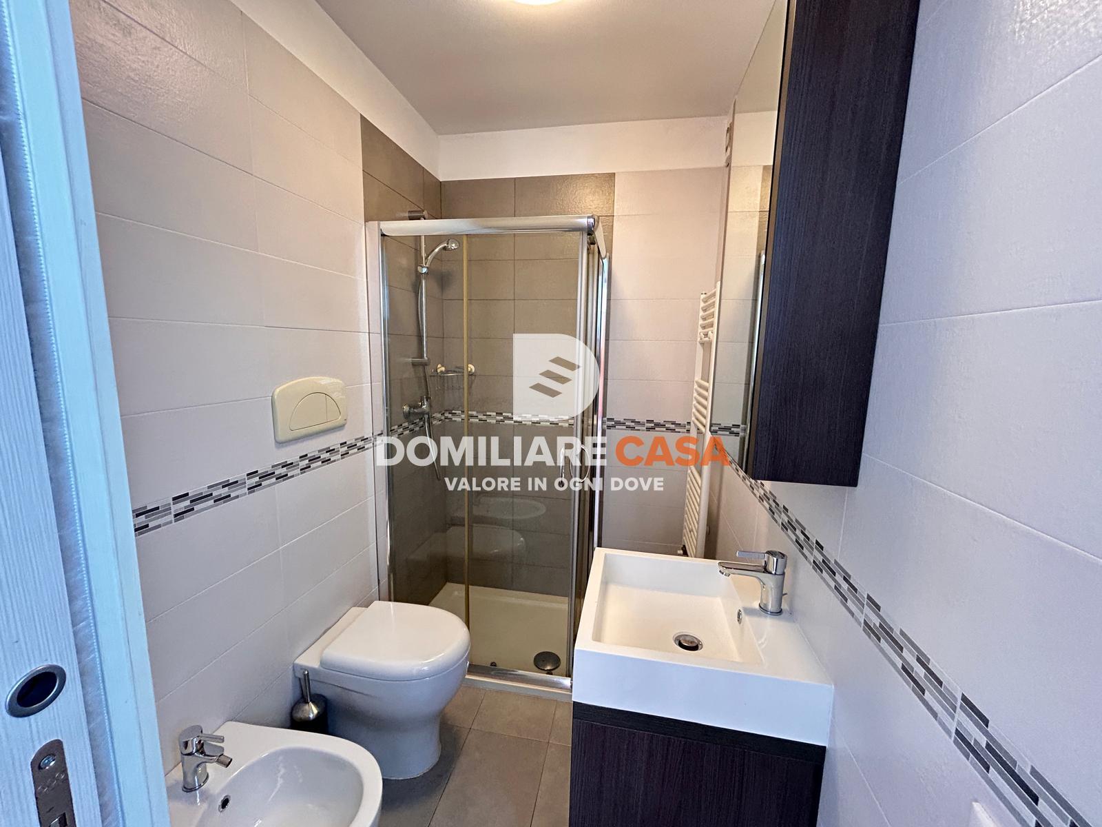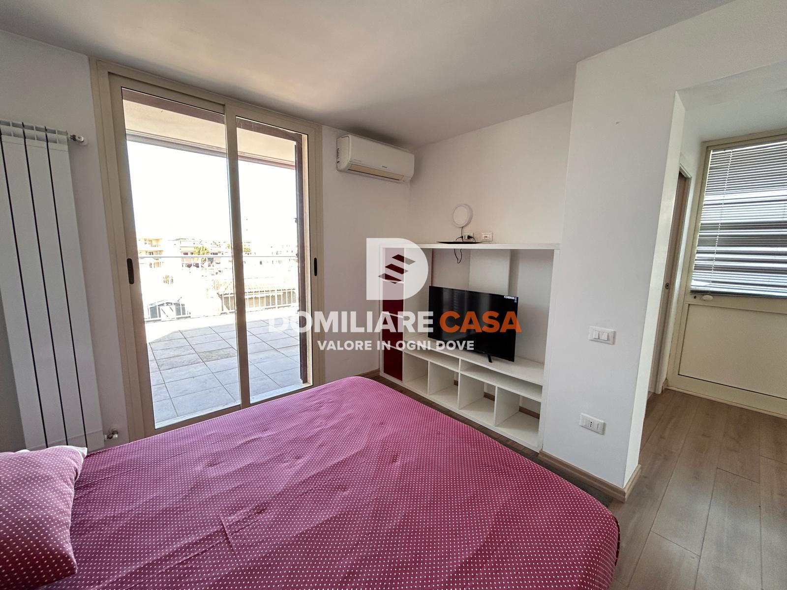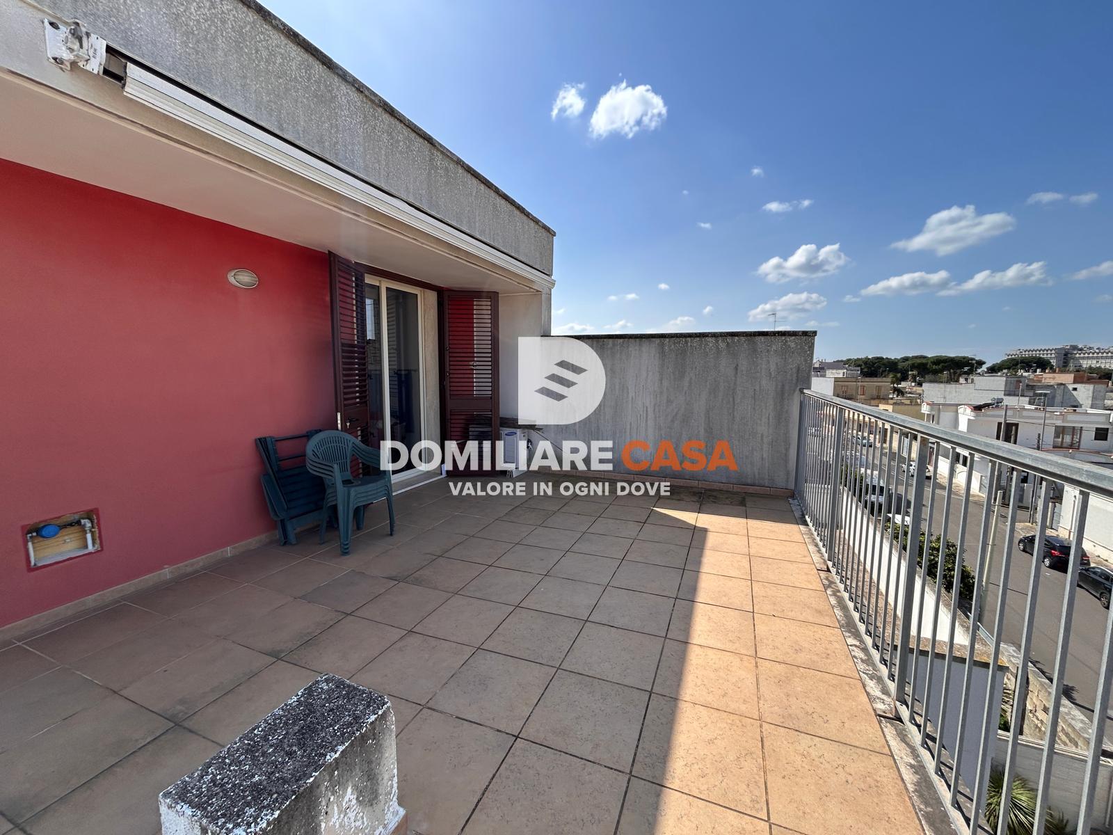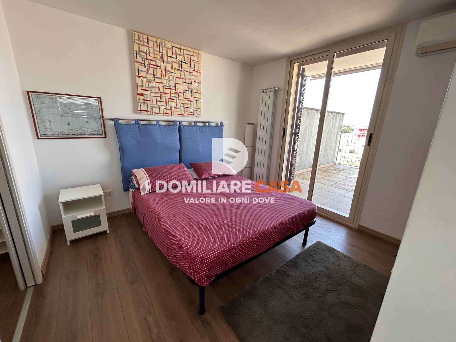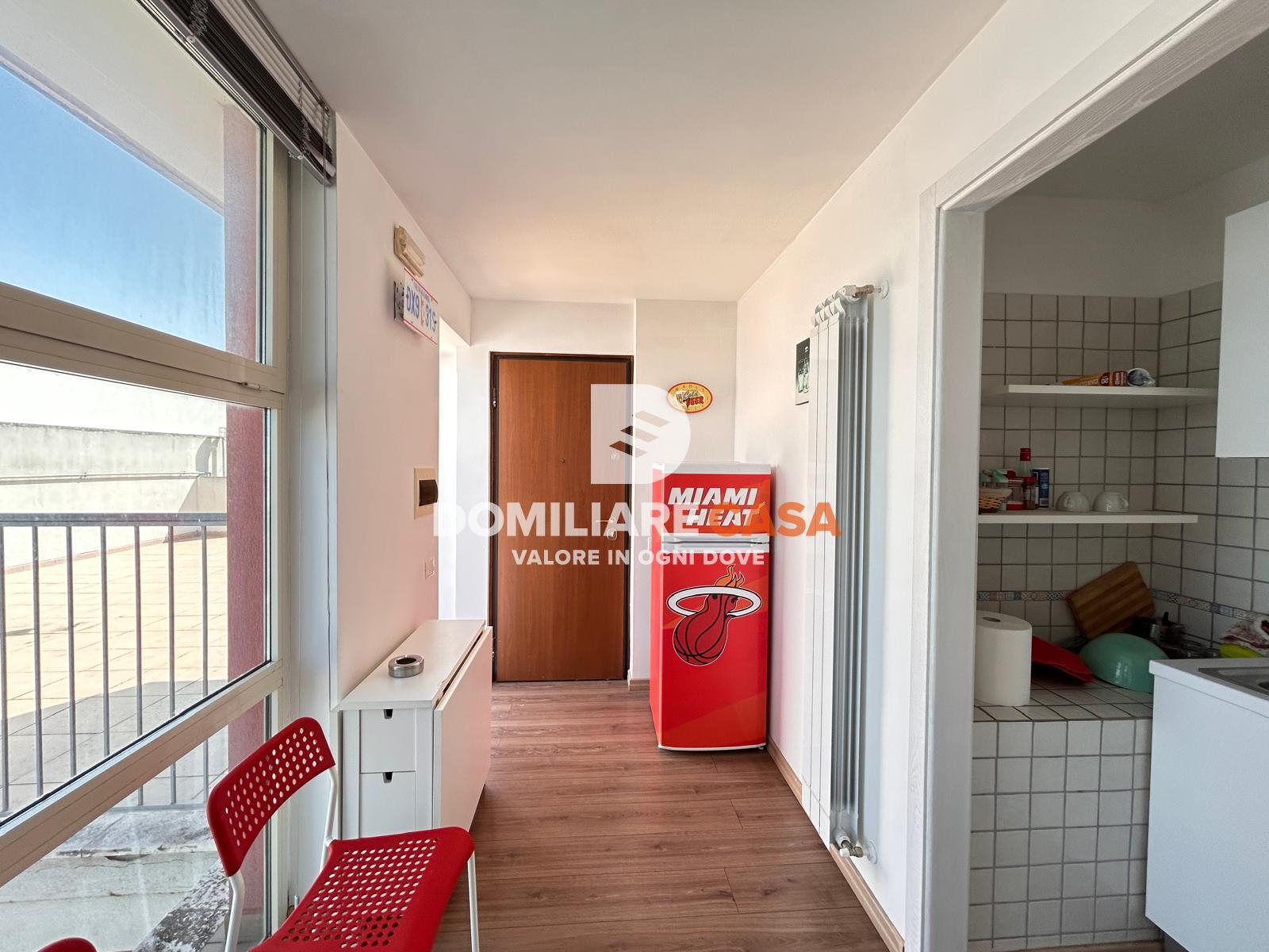 Elemento distintivo della proprietà è il bilocale all’ultimo piano, caratterizzato da una distribuzione più esclusiva: ingresso con angolo cottura a vista, camera da letto dotata di cabina armadio, bagno e soprattutto un ampio terrazzo che abbraccia l’immobile su tre lati.